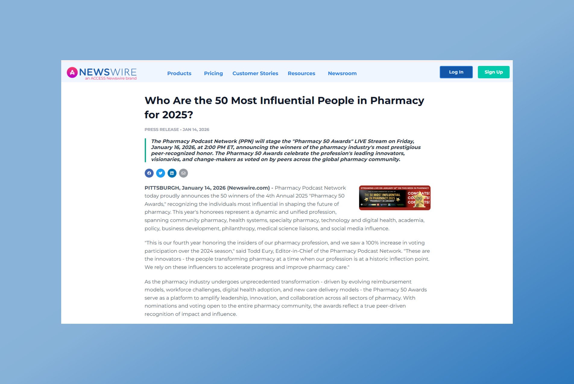 Many notable CPESN pharmacists, luminaries and friends on this list by the Pharmacy Podcast Network. Check out more about the 50 most influential people in 2025 HERE.